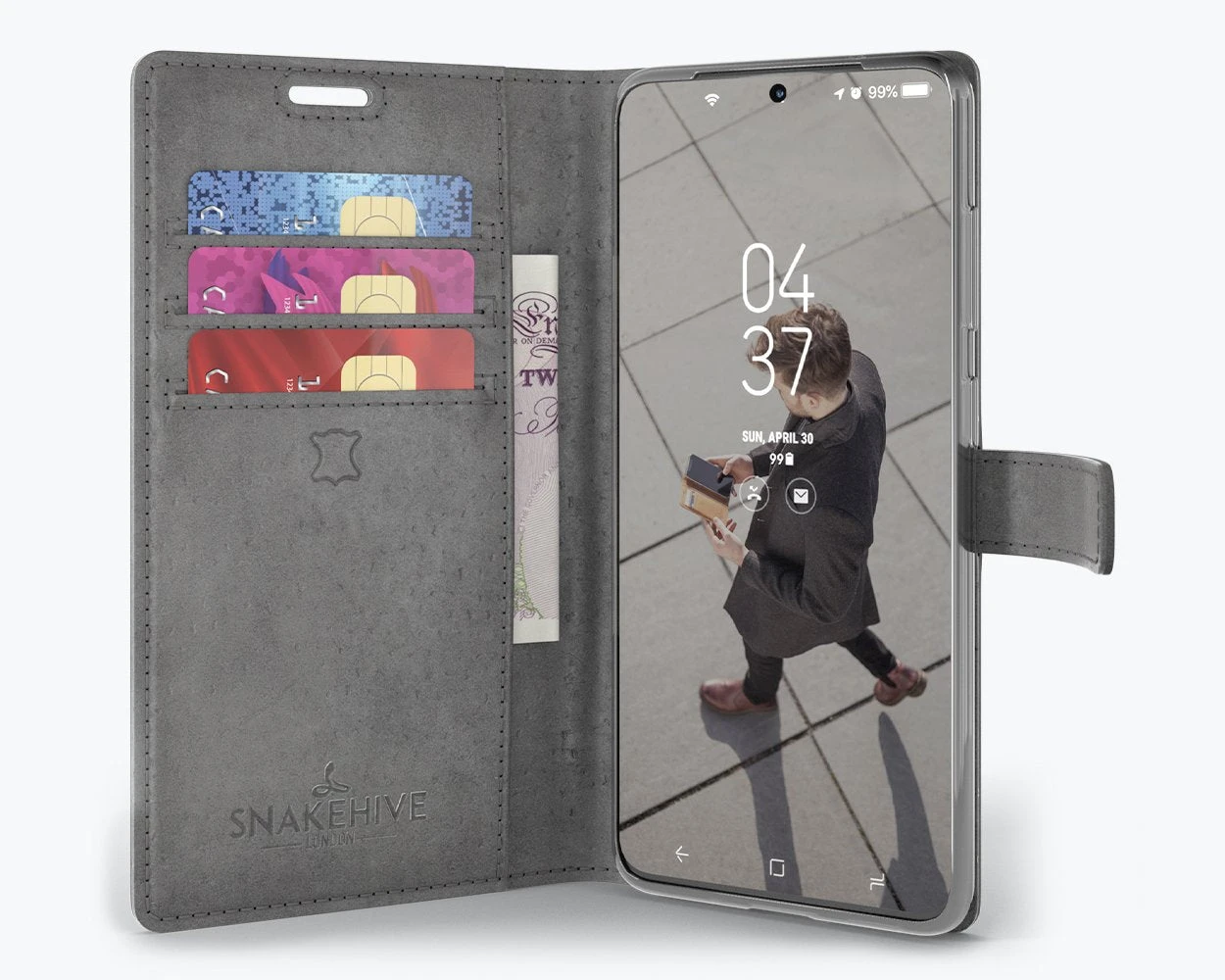 Samsung Galaxy S20 - Vintage Leather Wallet Phone Case -Union Store 3rdImageGrey 3178c4a7 ddfc 40ee a53b 8e2a8bf44a6f
